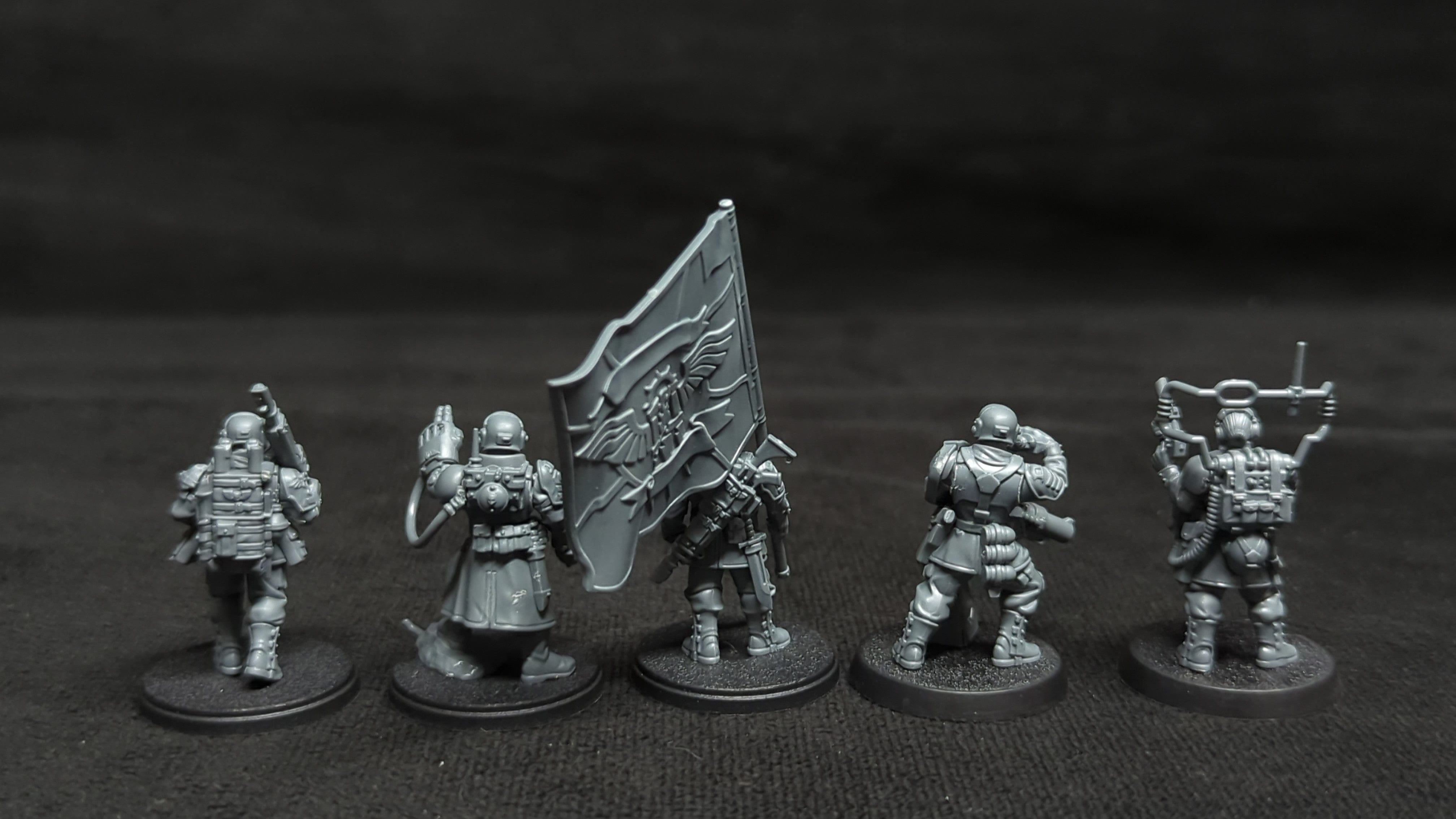 Astra Militarum Cadian Command Squad x5. . Unpainted or partially painted. Assembled or partially assembled models. Please refer to the pictures for additional details, if any, before buying.