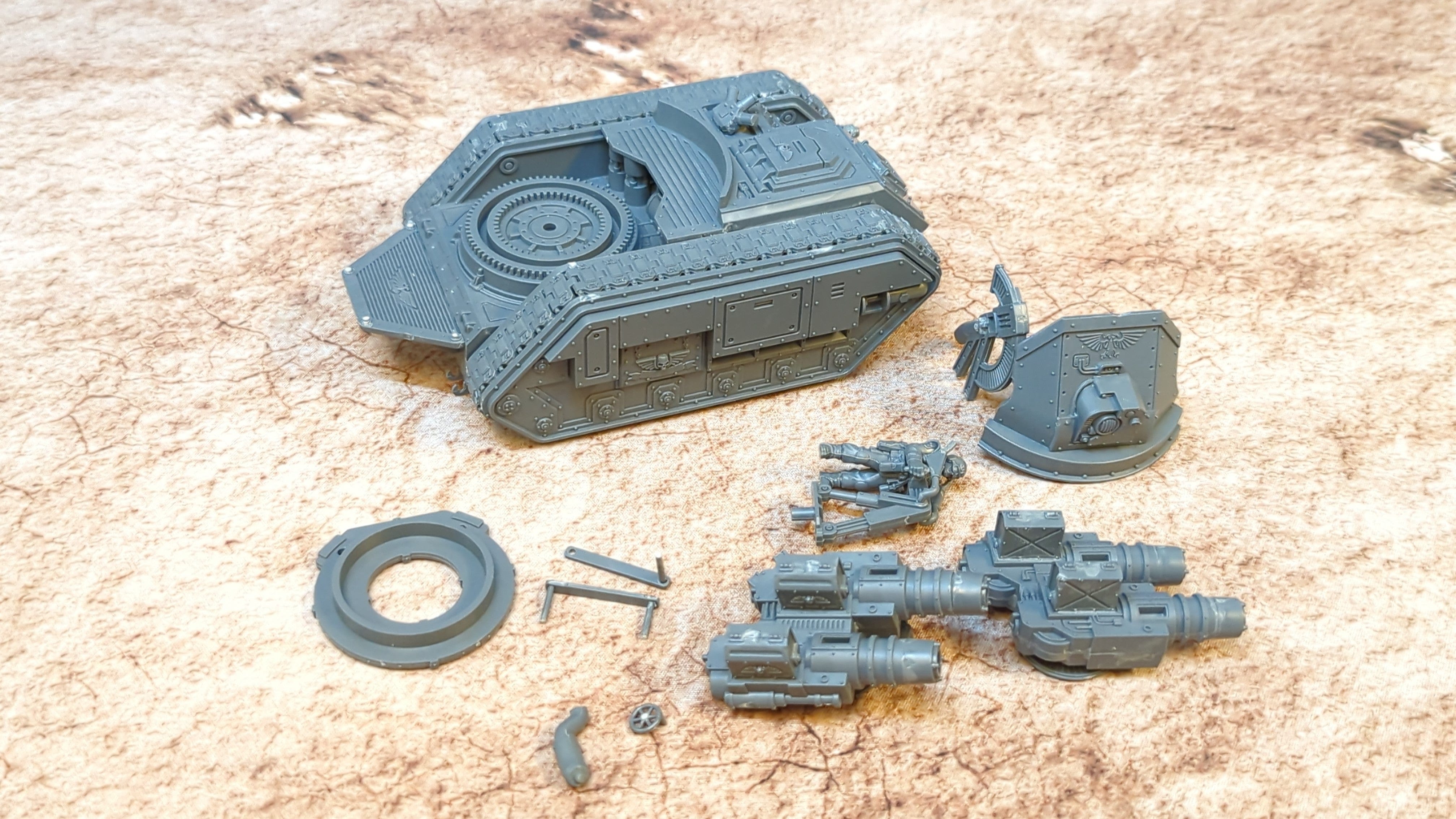 Astra Militarum Wyvern. Unpainted or partially painted. Some light damage to parts of the minis. Please refer to the pictures for additional details, if any, before buying.