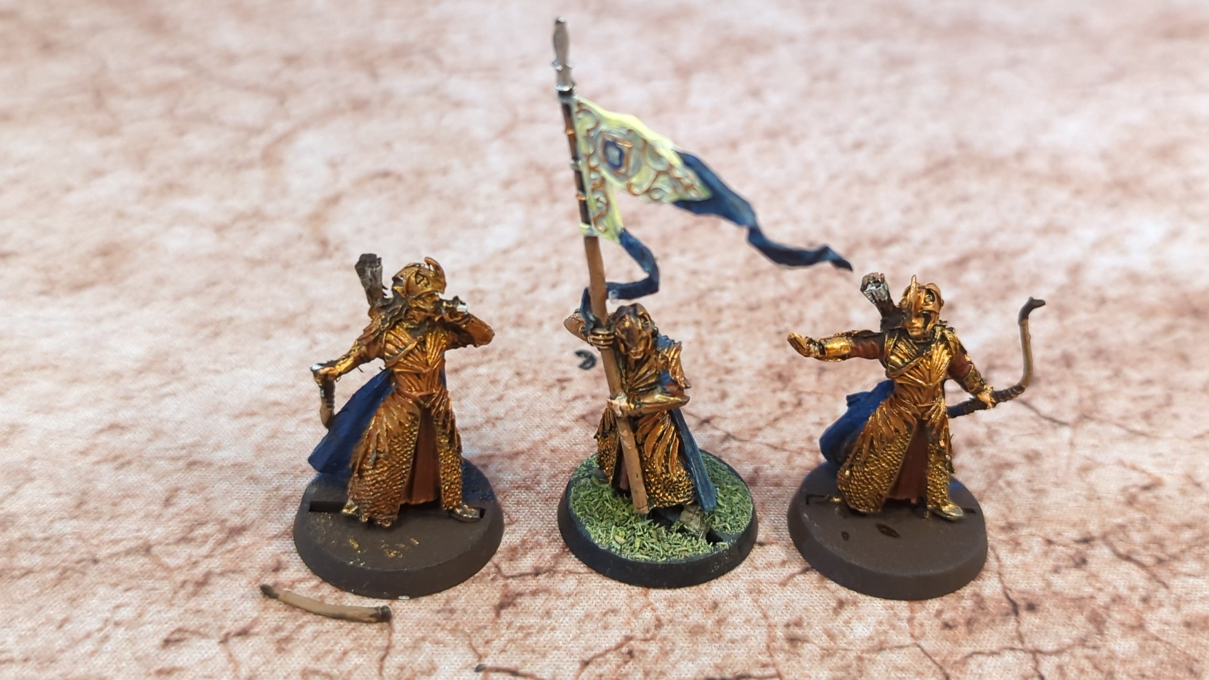 Middle-Earth : Galadhrim Elf Commanders x3. Painted models. Assembled or partially assembled models. Please refer to the pictures for additional details, if any, before buying.
