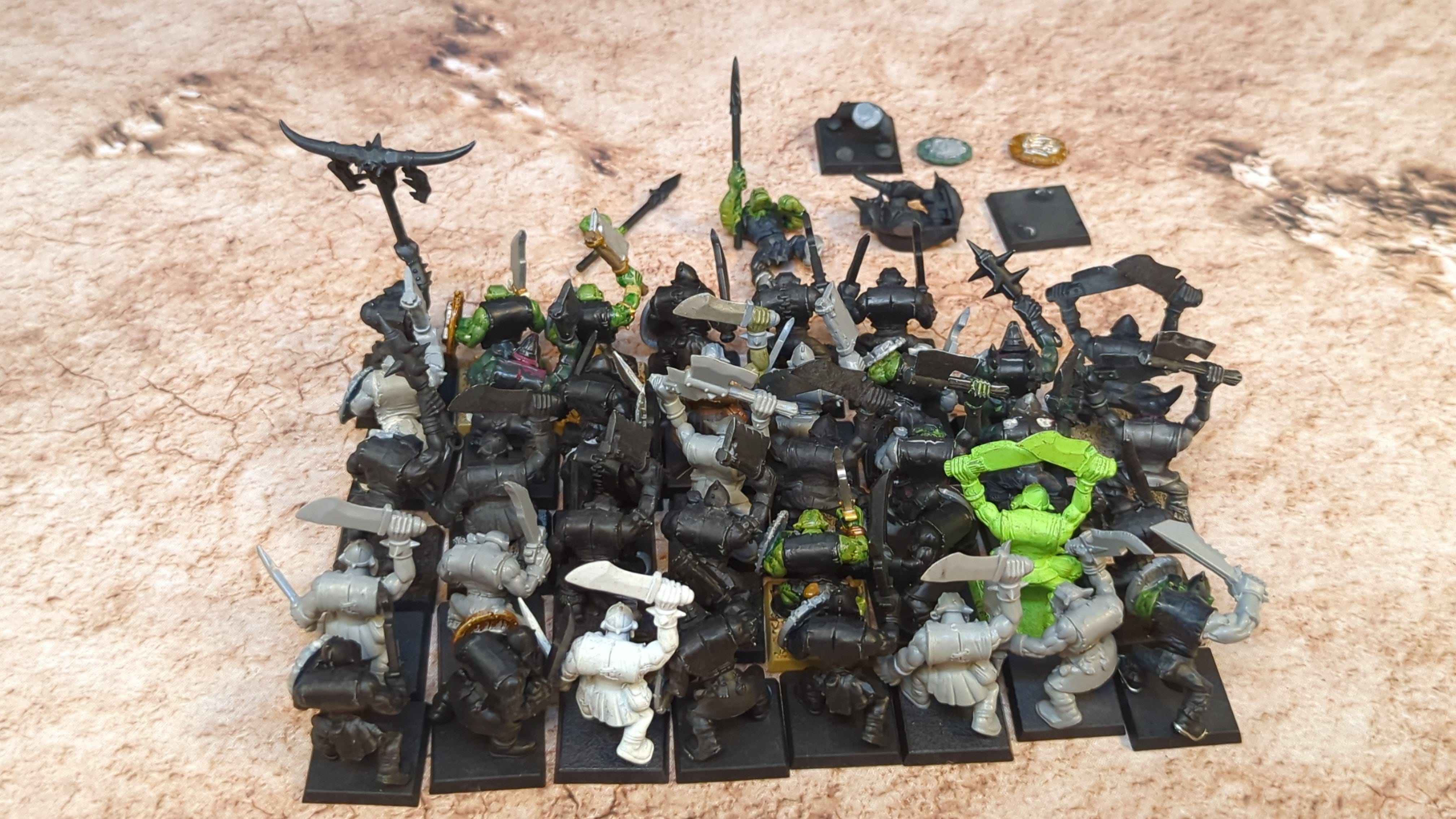The Old World Orcs & Goblin Tribes Orc Boyz & Orc Arrer Boyz Mob x40. Unpainted or partially painted. Assembled or partially assembled models. Please refer to the pictures for additional details, if any, before buying.