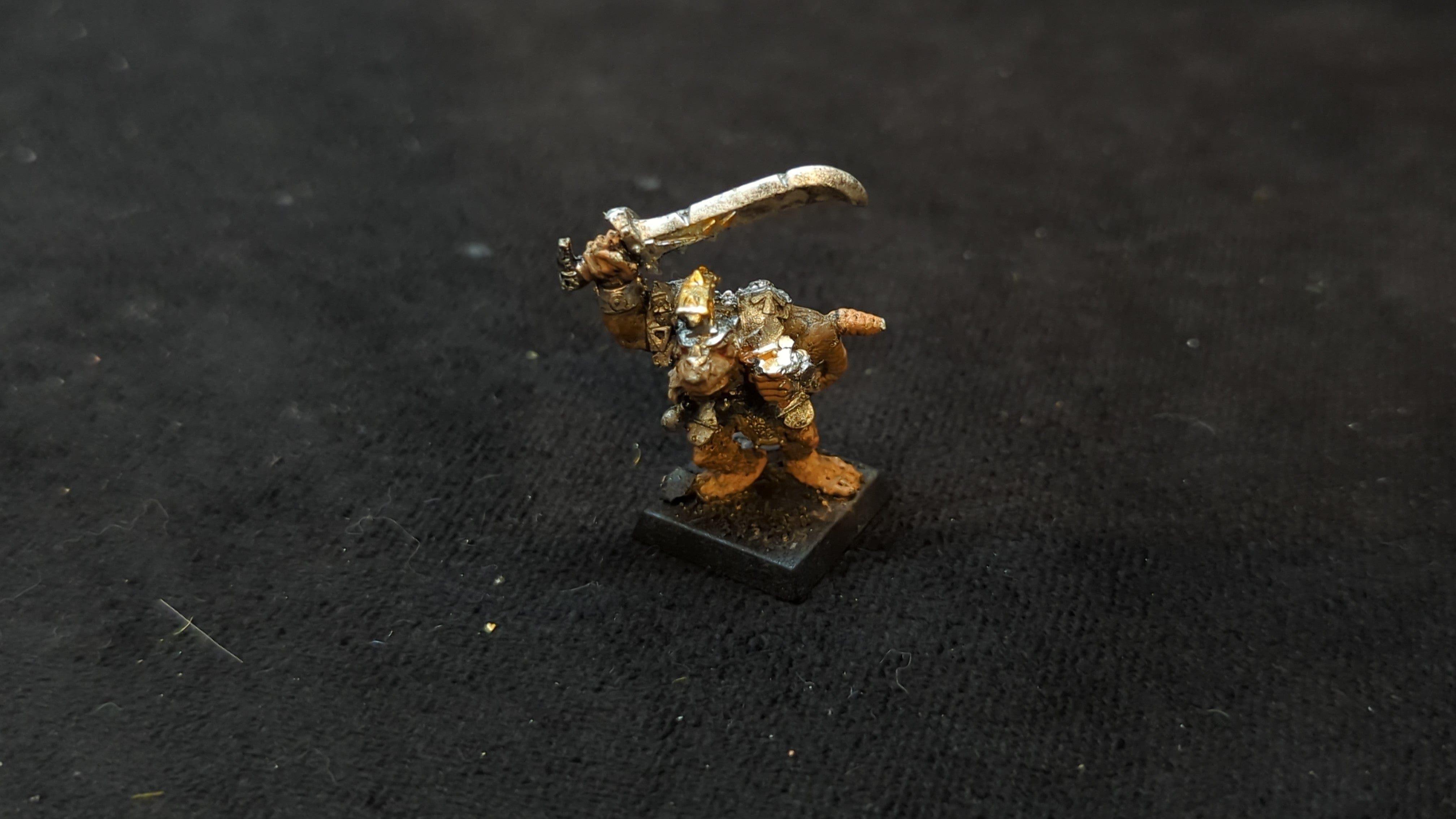 The Old World Skaven Warlord. Old Model, Metal, Missing Shield. Out of print model. Unpainted or partially painted. Assembled or partially assembled models. Please refer to the pictures for additional details, if any, before buying.