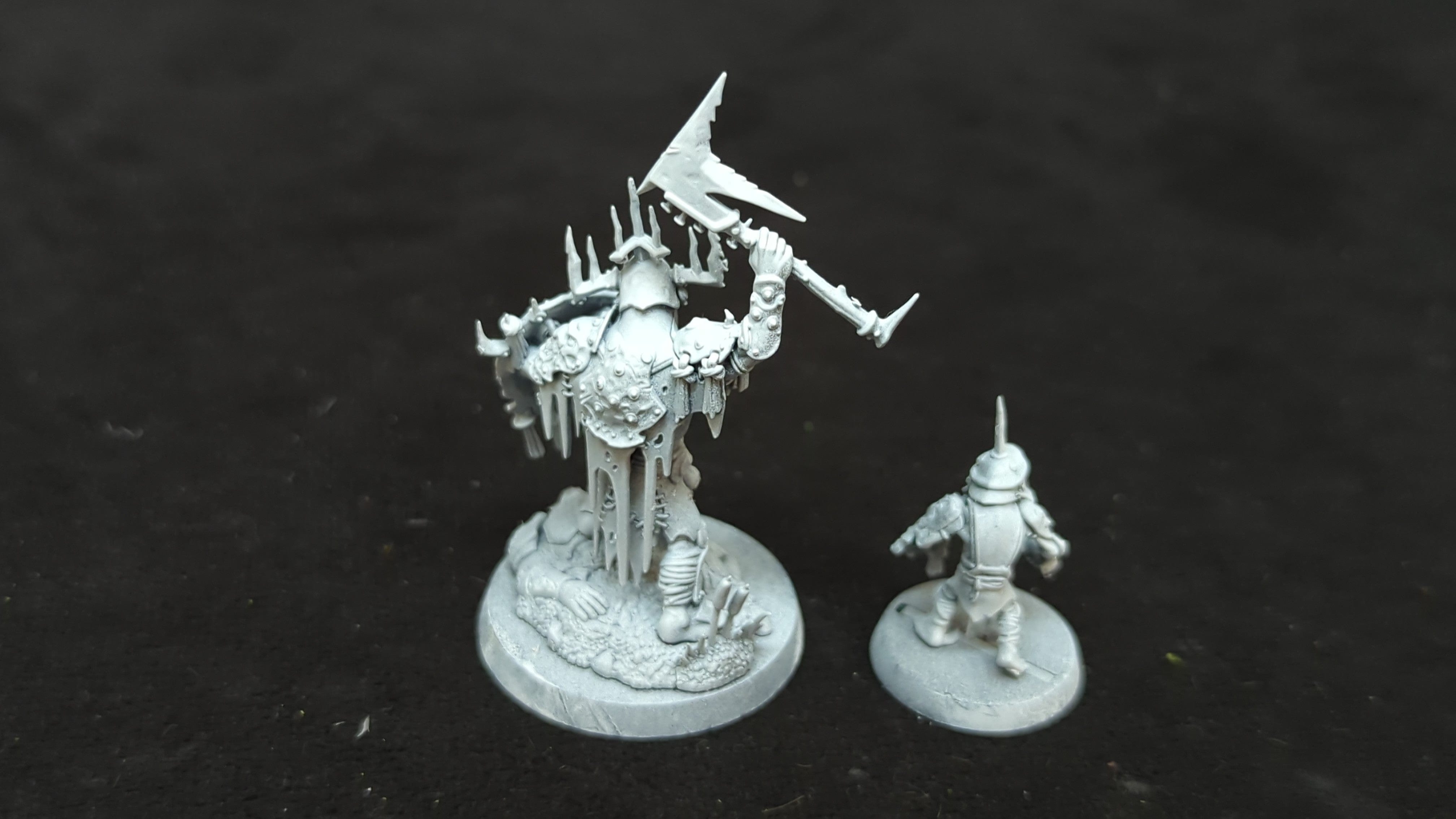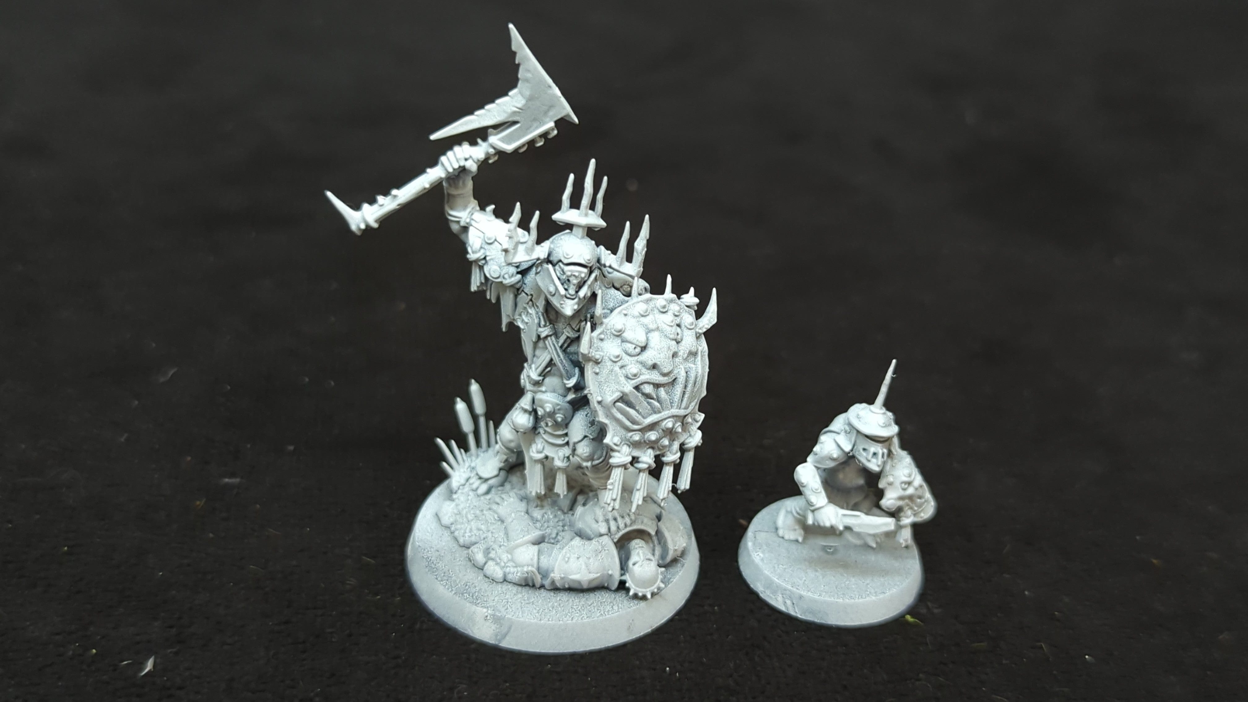 Orruk Warclans Killaboss with Stab-Grot. Unpainted or partially painted. Assembled or partially assembled models. Please refer to the pictures for additional details, if any, before buying.