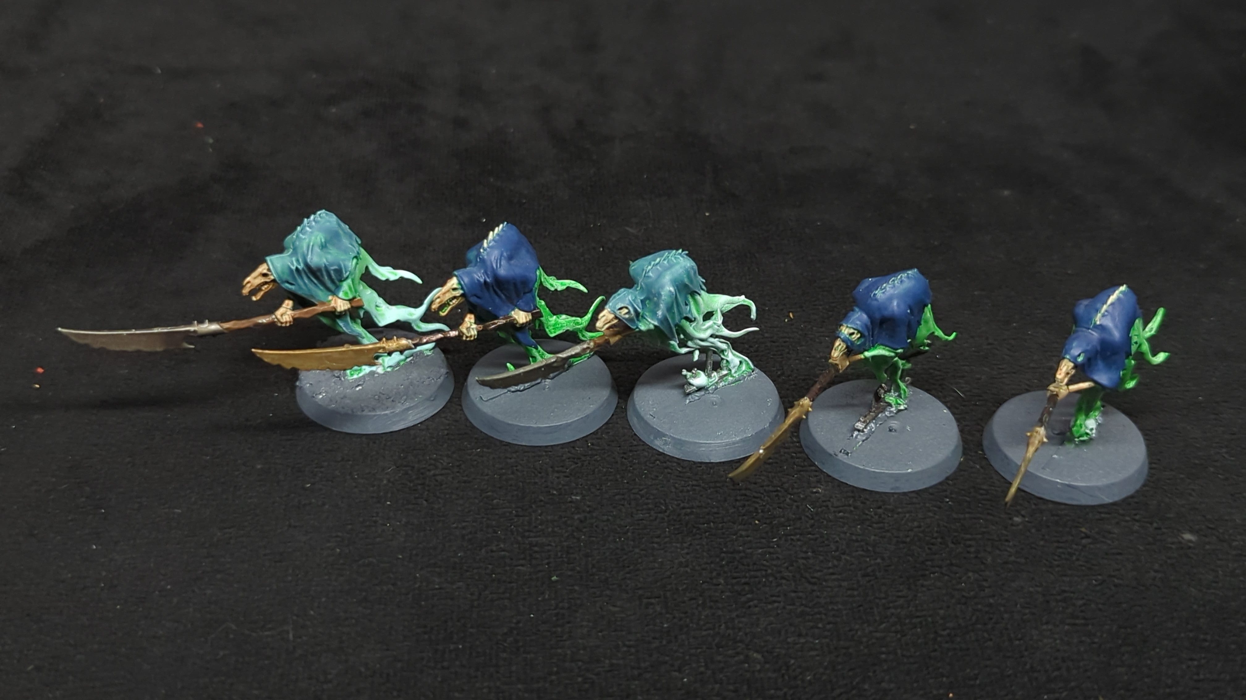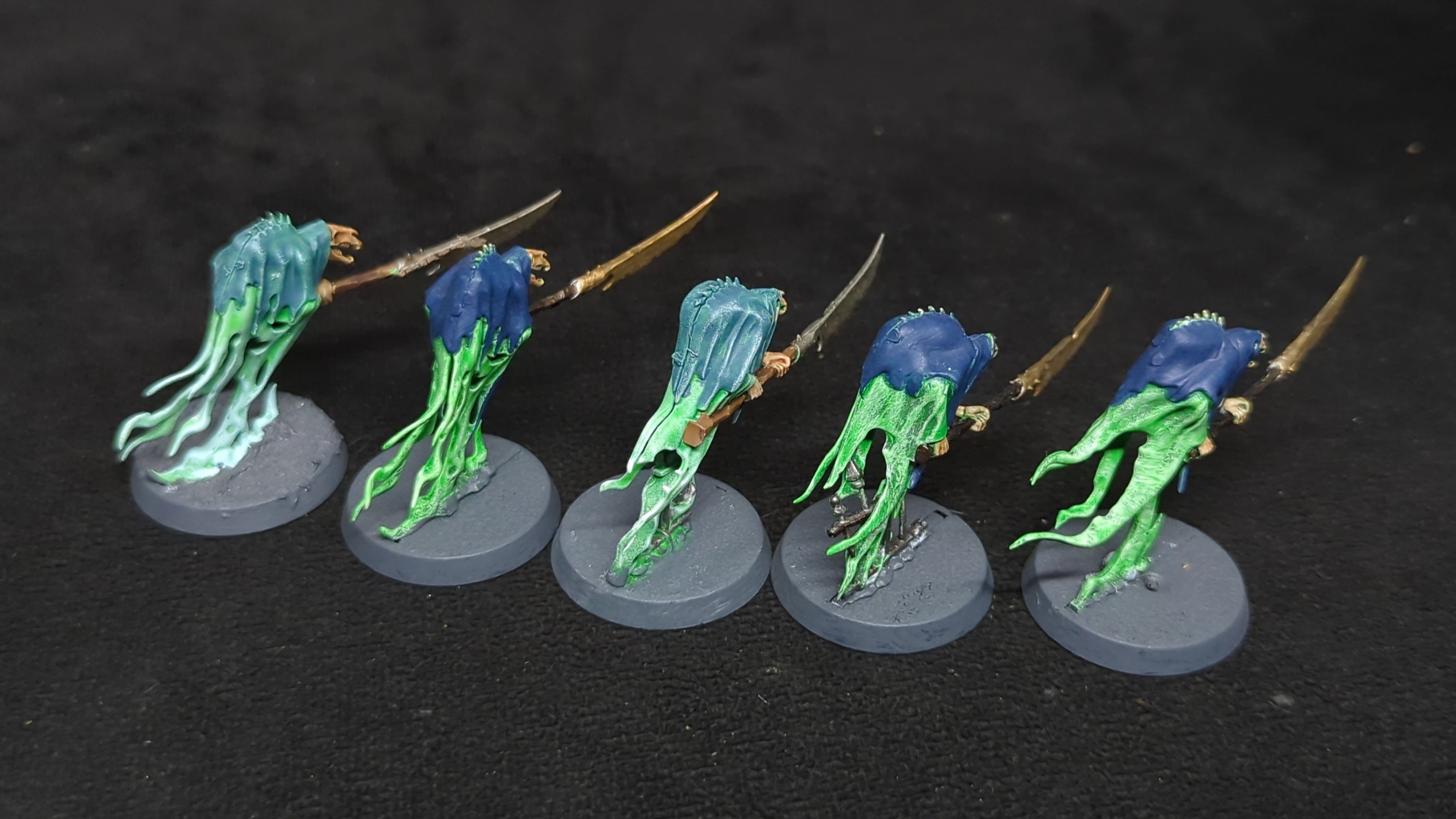 Nighthaunt Glaivewraith Stalkers x5. Painted models. Assembled or partially assembled models. Please refer to the pictures for additional details, if any, before buying.