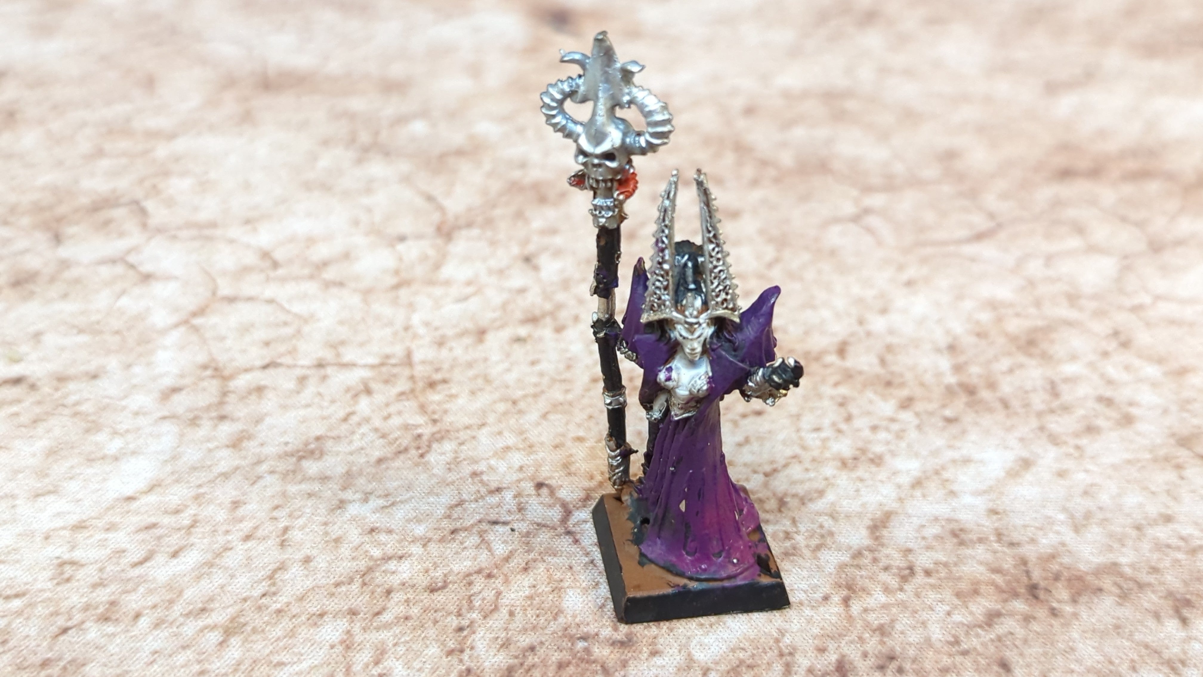 Dark Elves: Sorceress (OOP). Out of print model. Painted to a Tabletop ready standard. Please refer to the pictures for additional details, if any, before buying.