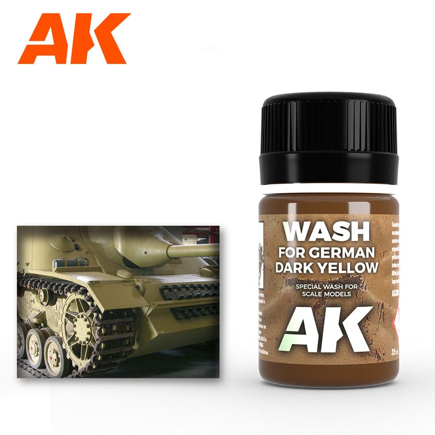 A wash specially designed for German Dark Yellow (Dunkelgelb), but also great for vehicles in medium tones. Just shake well before use and you can apply it directly to your model to create contrast and depth in the details. Remove excess with a clean brush moist in Enamel Thinner. This is an enamel product and can by dissolved using our White Spirit or Odourless Turpentine.