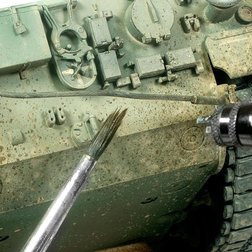 Splatter Wet Ground has been formulated for creating wet ground splattering and accumulation on vehicles, diorama’s, and vignettes. Wet Ground is just the right consistency; easily handled by brush, creating realistic textures of accumulated wet ground and dirt on lower vehicle surfaces has never been easier. Ideal the final touches of variable textured ground to your model or terrain. Can be splashed using a brush and directing the flow of air of your airbrush