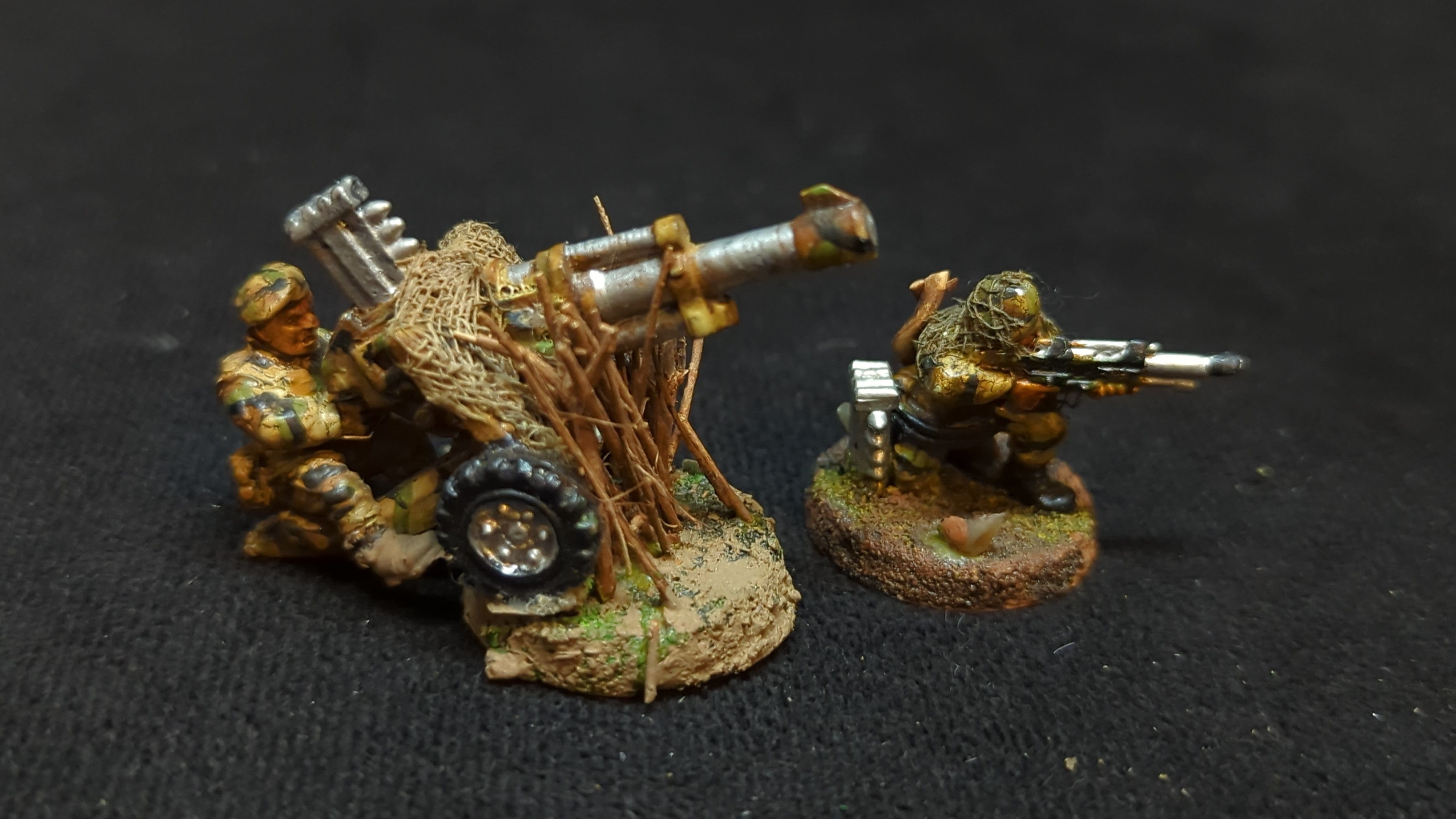 Astra Militarum Beret Stormtrooper Autocannon Squad x2. Old Model, Metal, Crew Missing Backpack. Out of print model. Painted to a Tabletop ready standard. Heavily damage to parts of the minis. Please refer to the pictures for additional details, if any, before buying.