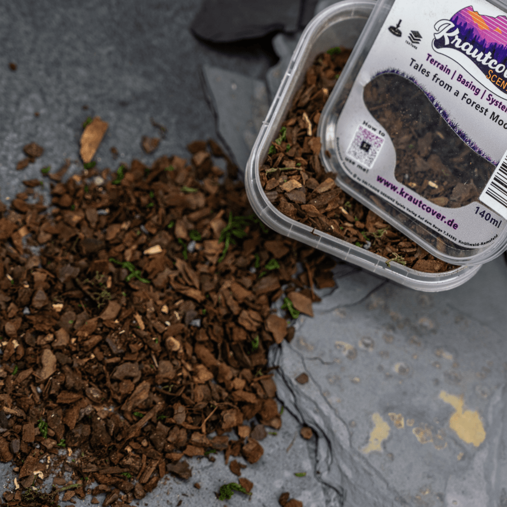 Tales from a Forest Moon is our mix for the ground design of large coniferous forests, be it here on earth or in a galaxy far away. The basecover offers a varied mix of green plants, roots, branches, stones and bark, creating a naturally complex forest floor texture in just one application.