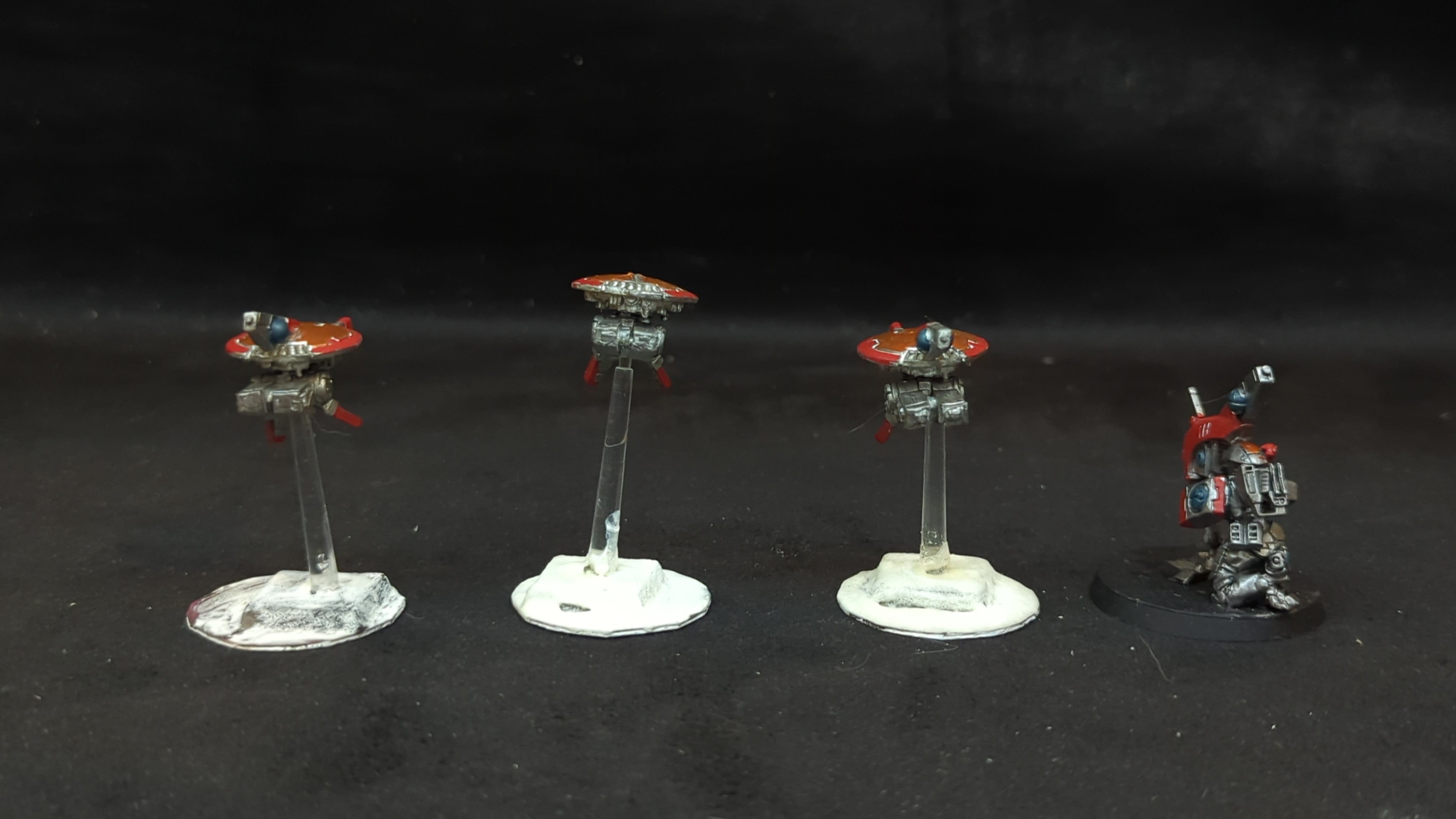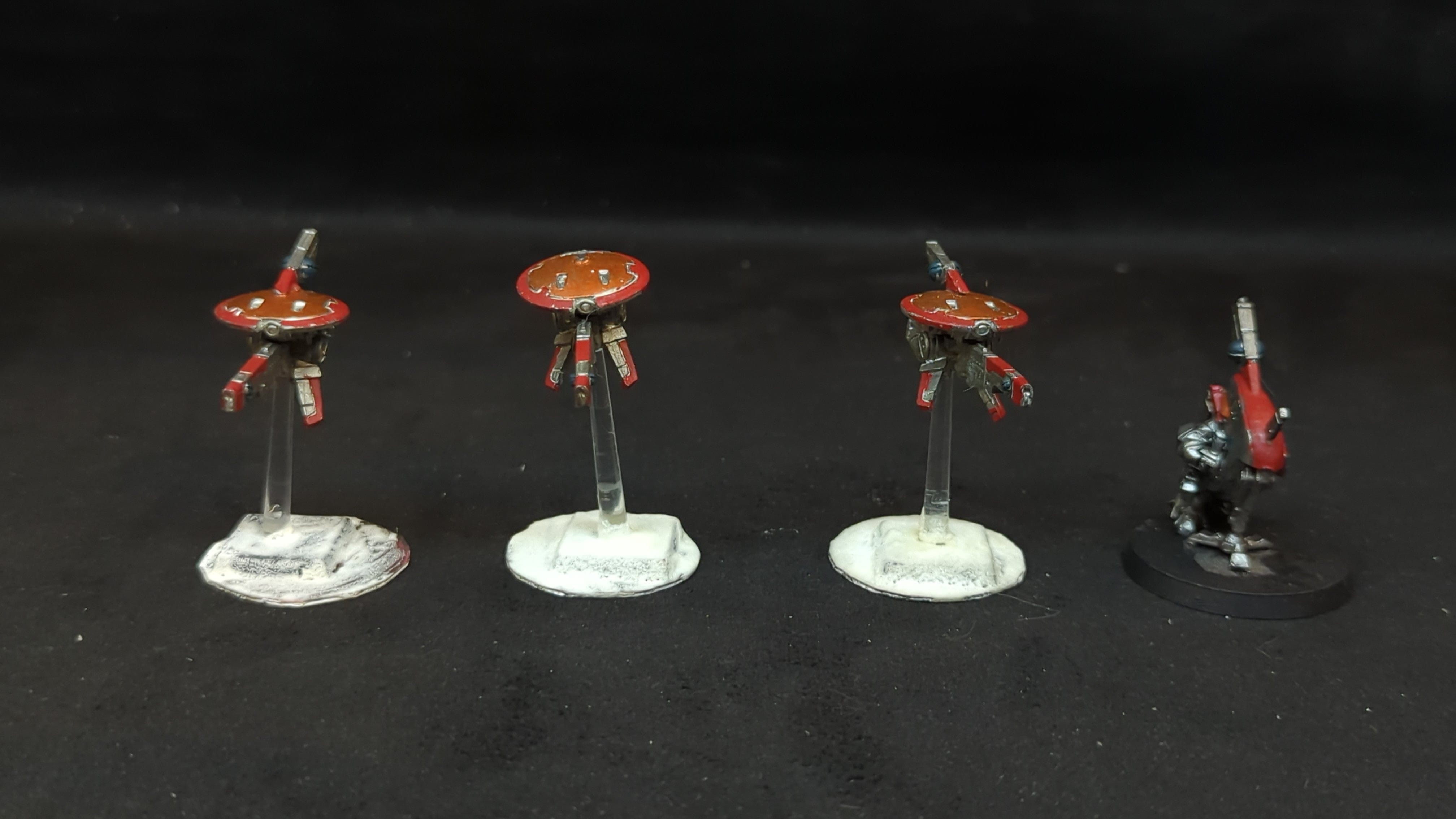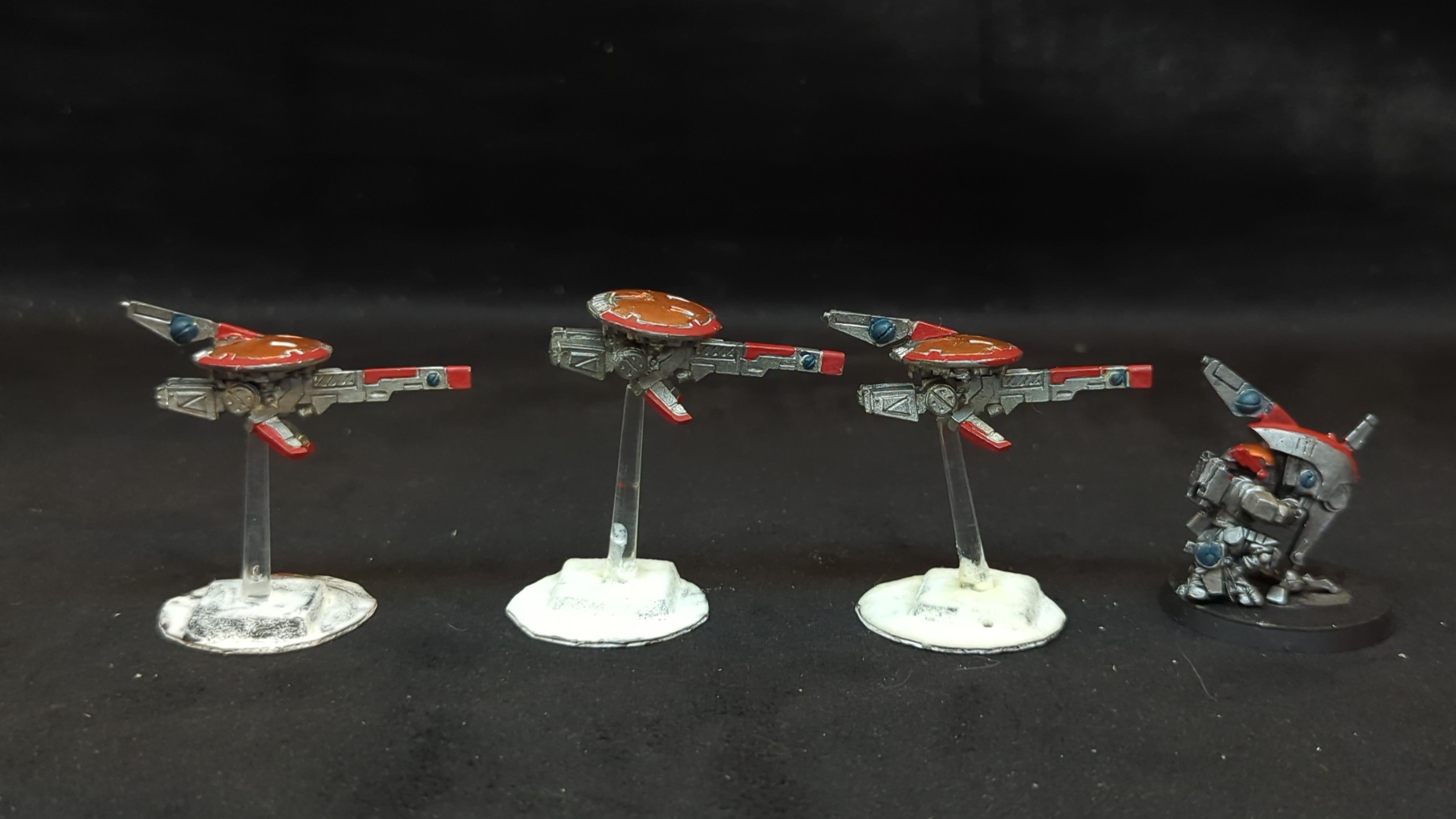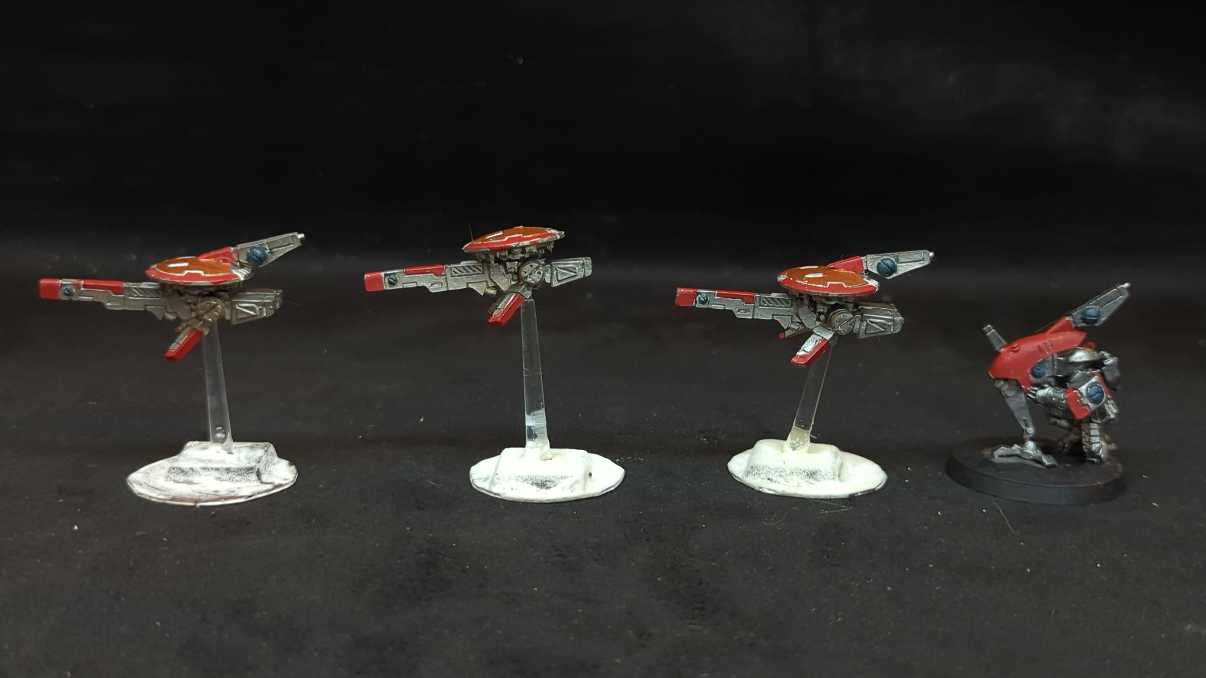 T'au Empire MV71 Sniper Drones & Firesight Marskman x4. . Painted models. Assembled or partially assembled models. Please refer to the pictures for additional details, if any, before buying.