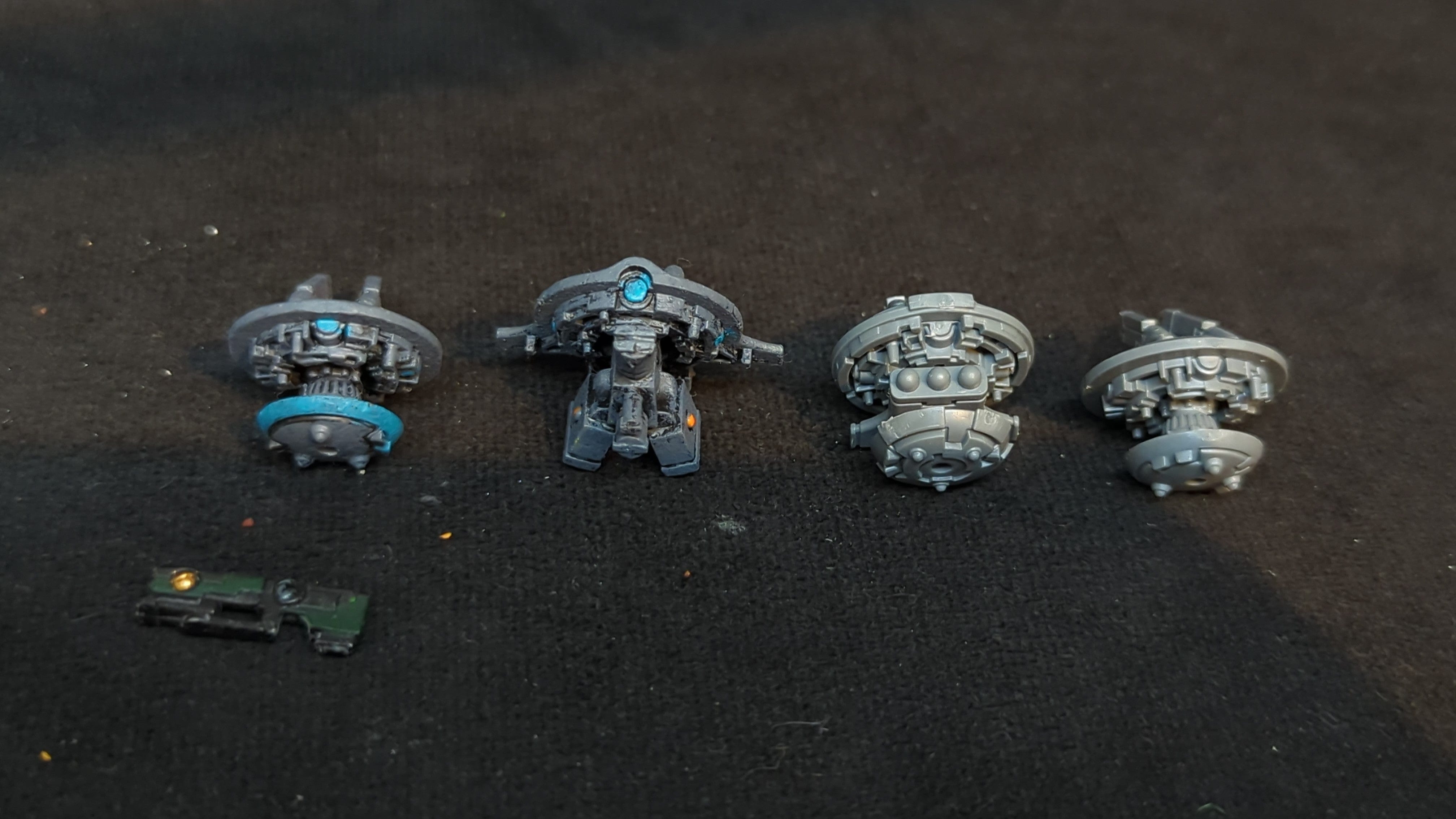 T'au Empire Tactical Drones x4. Unpainted or partially painted. Assembled or partially assembled models. Please refer to the pictures for additional details, if any, before buying.