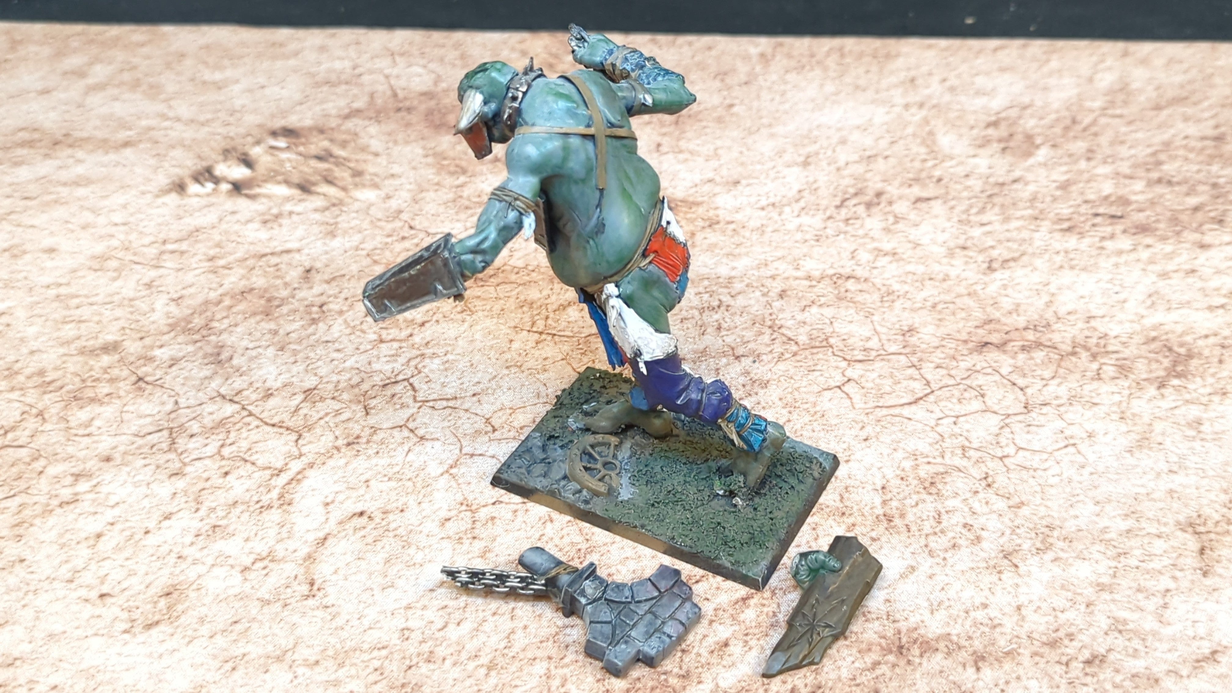 Sons of Behemat Mancrusher Gargant. Unpainted or partially painted. Assembled or partially assembled models. Please refer to the pictures for additional details, if any, before buying.