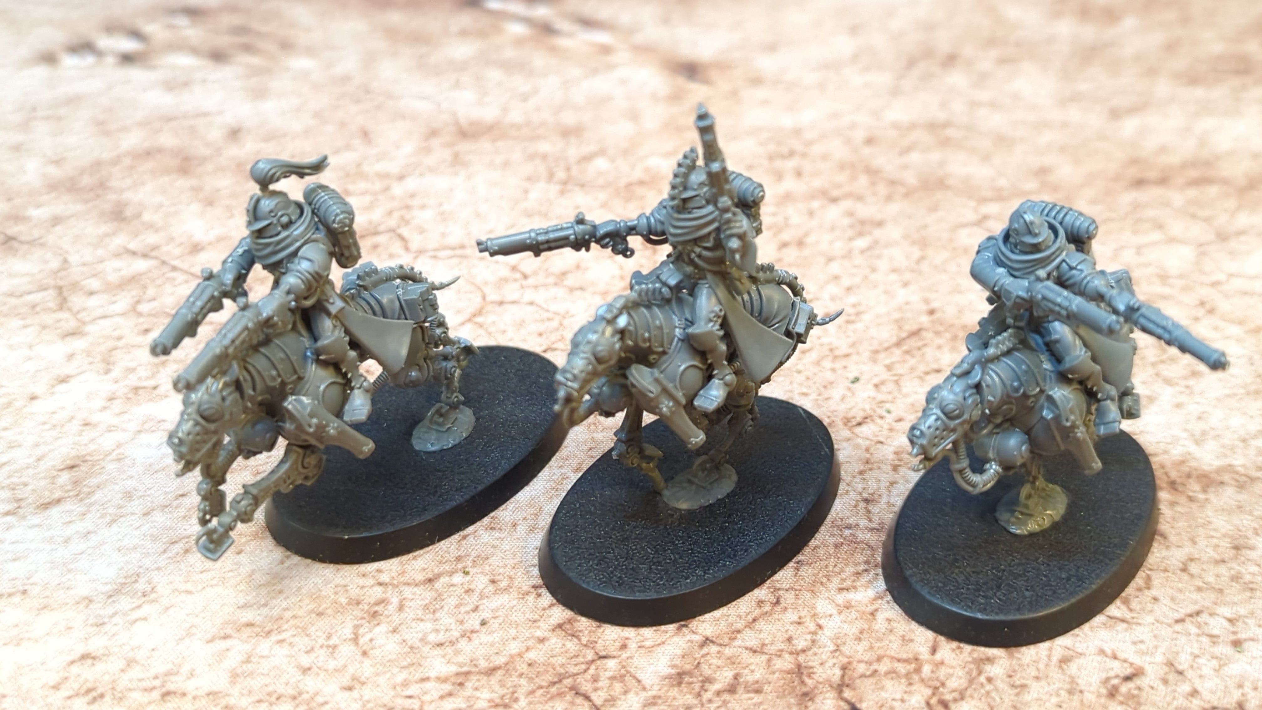 Adeptus Mechanicus Sulphurhounds x3. Unpainted or partially painted. Assembled or partially assembled models. Please refer to the pictures for additional details, if any, before buying.