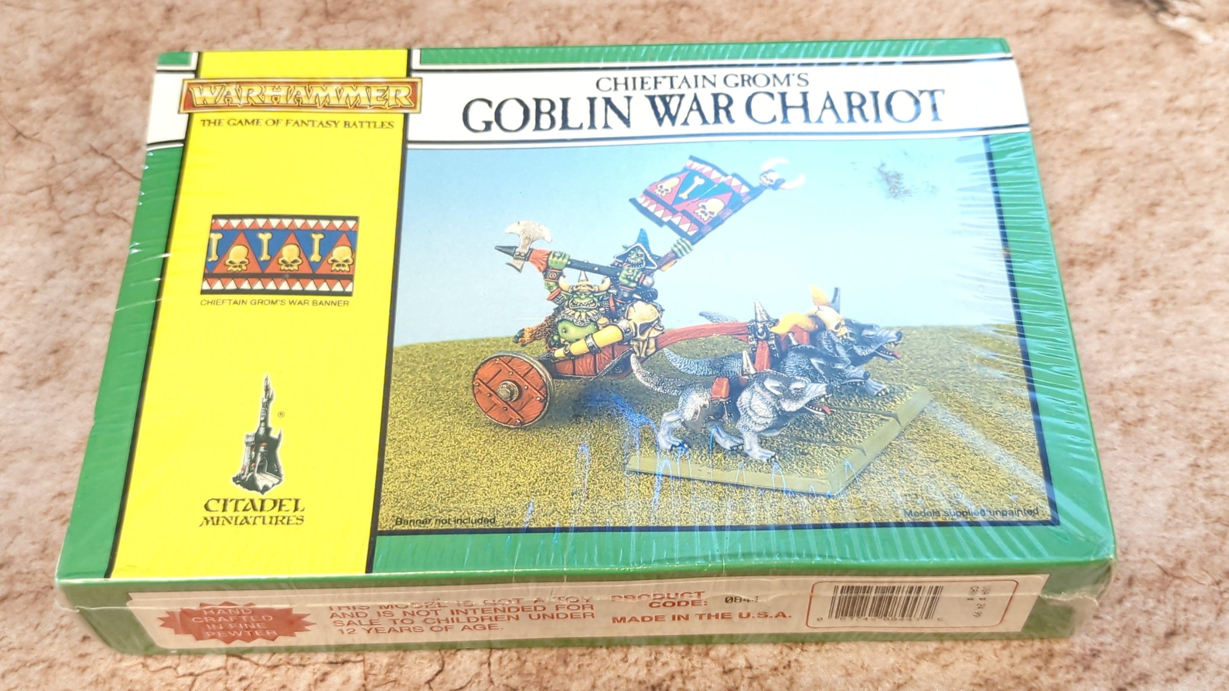 Chieftain Grom’s Goblin War Chariot. Out of print model. Unpainted or partially painted. New product, sealed in its original packaging. Please refer to the pictures for additional details, if any, before buying.